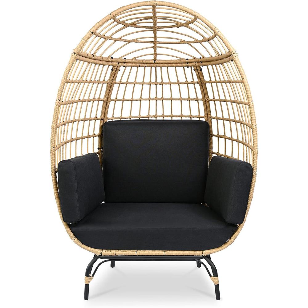Features: Wicker Rattan Sofa Chair Washable Non-slip Sofa Chair for Outdoor/Indoor Garden Decoration Lightweight, Durable Polyester and PE Coating Set Wicker Egg Chair Perfect for Relaxing Woven Texture and Gentle Curves Eco-friendly and Easy to Clean and Maintain Stain-resistant, All-Weather Cushion Sturdy Powder-coated Steel Frame Synthetic Wicker Rattan Weave Contemporary Ribbed Back Design Perfect Addition to the Outdoor Patio, Deck, and Porch What's in the Box: Wicker Egg Chair Steel Frame (4) Cushion A Bag of Screws Technical Specs: Construction Material: Powder-coated Steel Frame Weight Capacity: 440 lbs. Product Dimension (L x W x H): 57.5'' x 33.5'' x 39.4'' -inches Sold as: 1 Weight: 47.66 lbs.