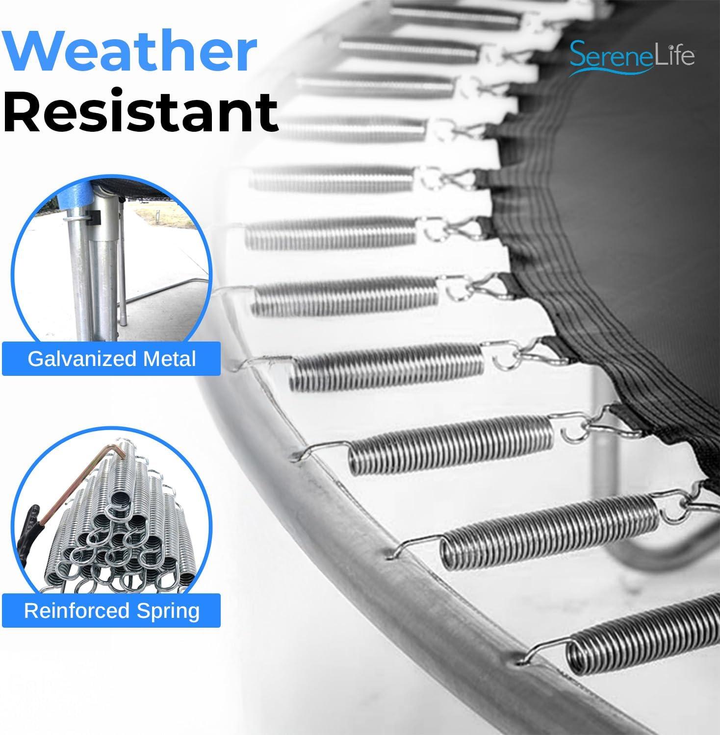 DURABLE & WEATHER-RESISTANT: Made with UV-tested, waterproof materials, this trampoline for adults and kids withstands harsh weather for long-lasting fun and fitness. Its rust-resistant steel frame provides year-round durability for outdoor play.