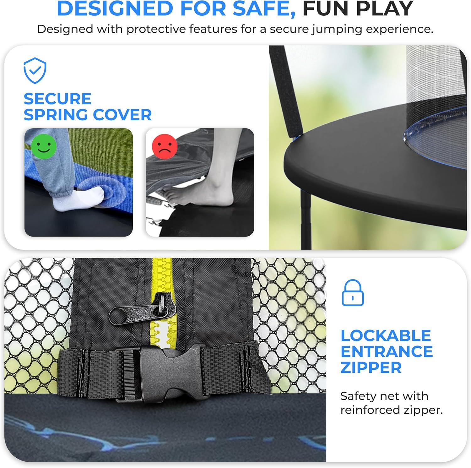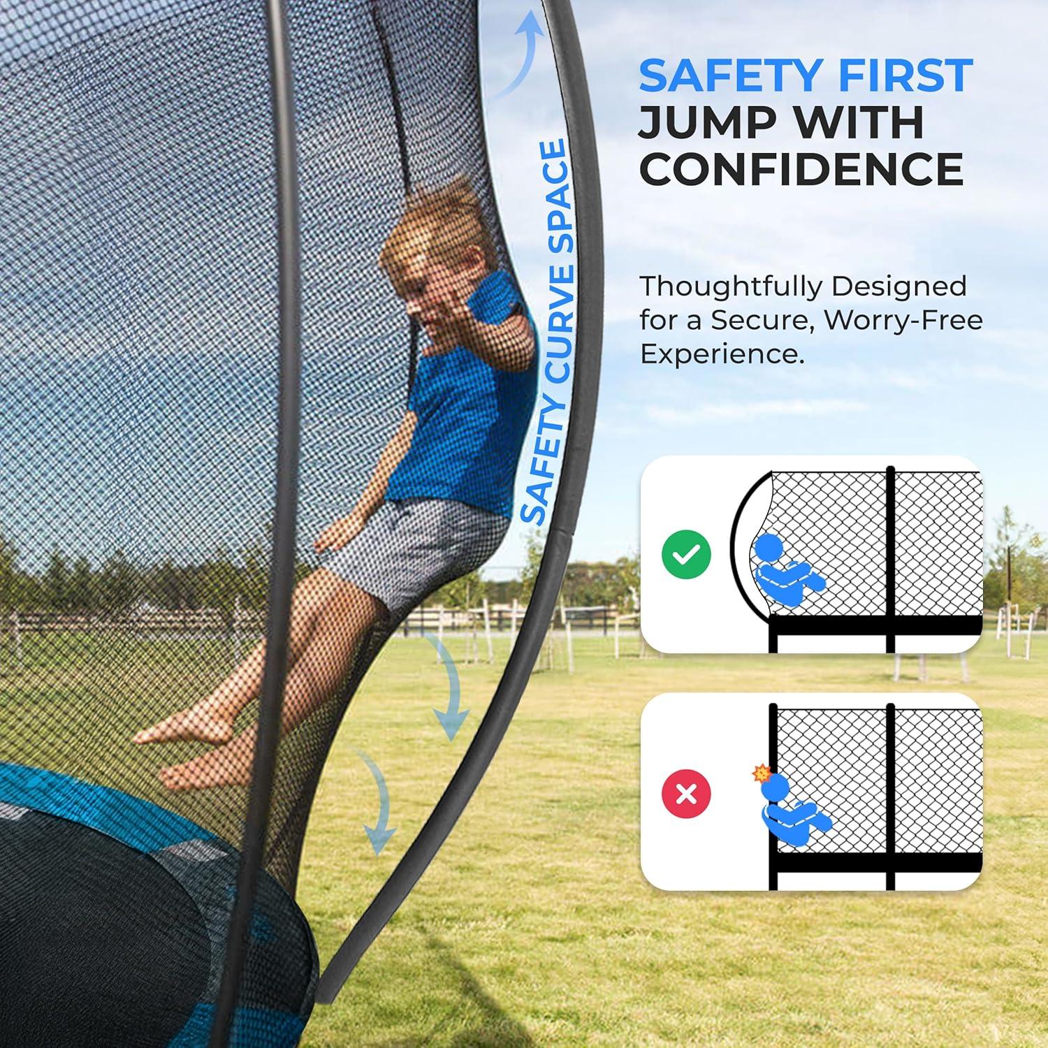 SUPERIOR BOUNCE: Enjoy exhilarating jumps on this kids trampoline, with 72 high-tension springs and a reinforced mat delivering unmatched bounce. This trampoline with net guarantees high-energy play for endless outdoor fun.