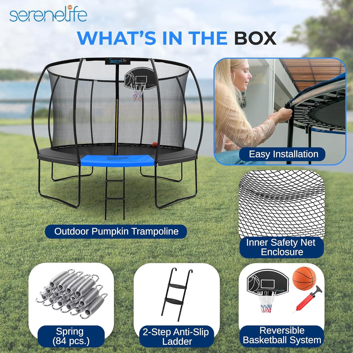 SereneLife 14FT Outdoor Trampoline for Kids(12FT-BLUE)