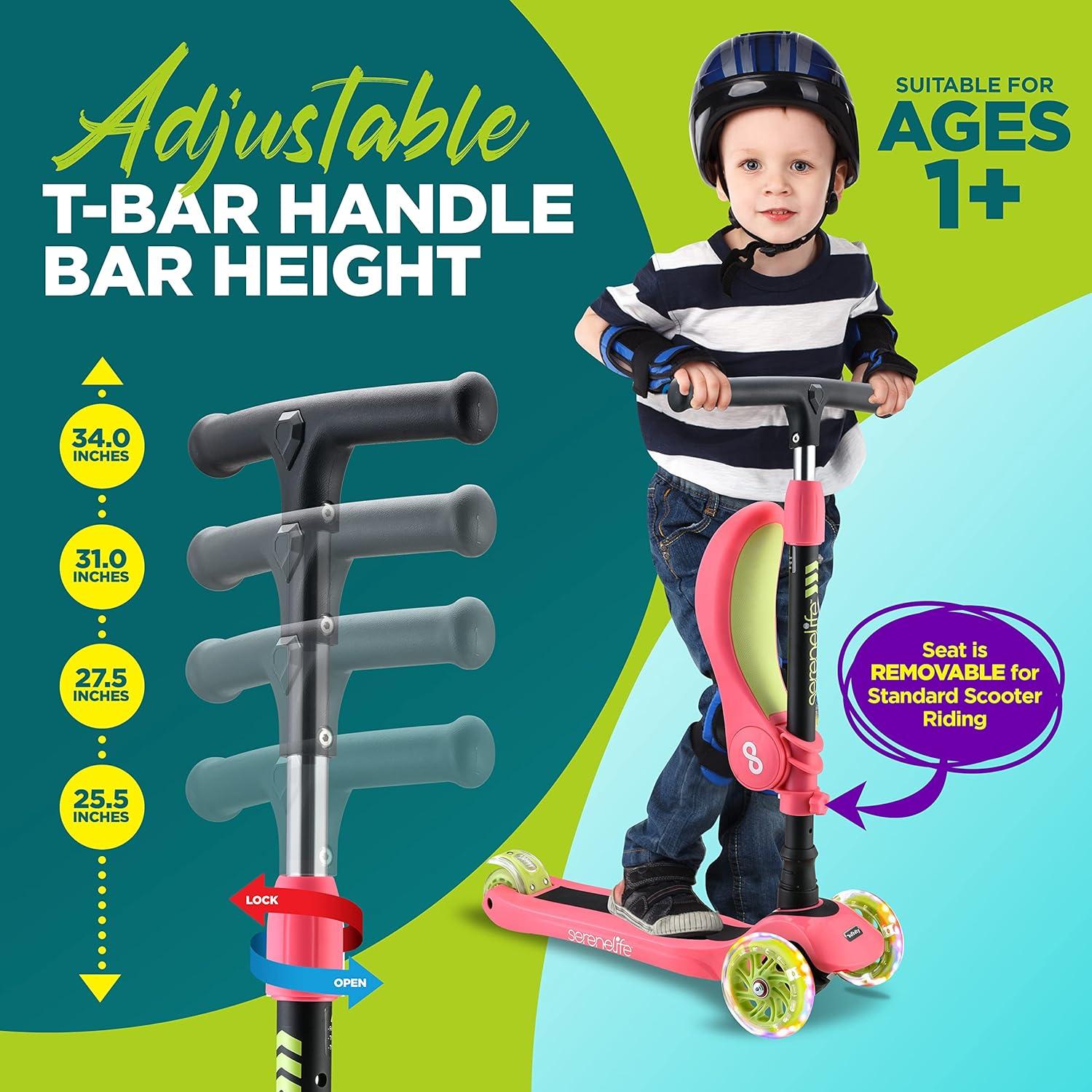 SIT OR STAND DESIGN WITH FOOT REST: This scooter for toddlers is equipped w/ a unique 45lb capacity removable flip-out seat which kids can use while cruising along with the built-in foot pad. Can be detached when they feel more confident standing up