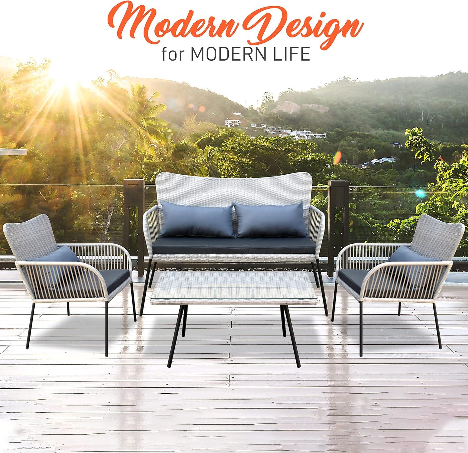 MADE TO LAST: Constructed with high-quality and durable PE rattan and a sturdy steel frame, this 4-piece rattan furniture set is built to withstand the test of time. The soft cushions are made of polyester fabric and are sponge padded for extra comfort, ensuring you can relax for hours on end.