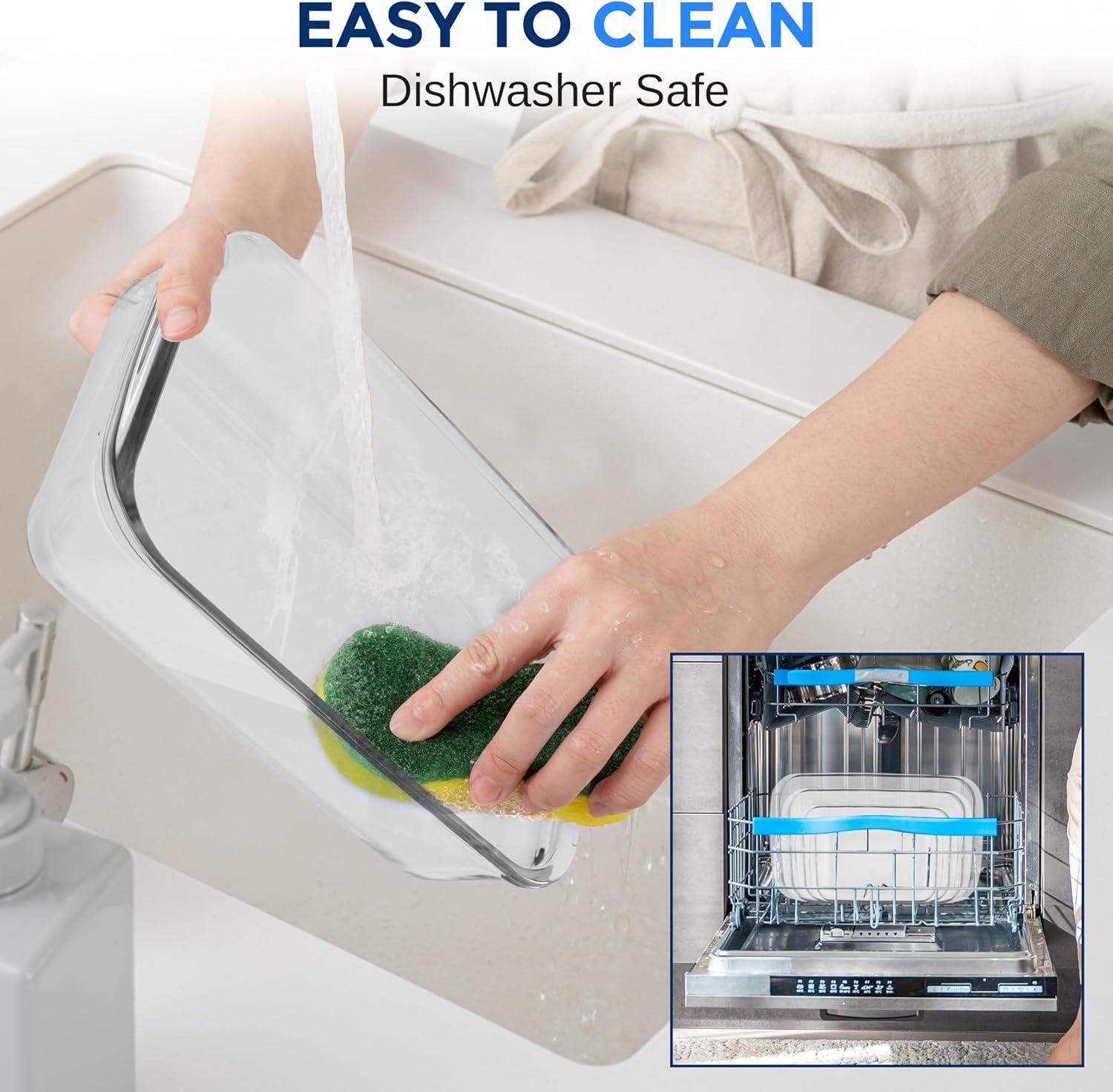 PREMIUM GLASS: Made from durable borosilicate glass, these pans resist warping and are oven, microwave, freezer, and dishwasher safe (lids excluded). The clear glass lets you monitor what you're baking, won't absorb chemicals, and is easy to clean.