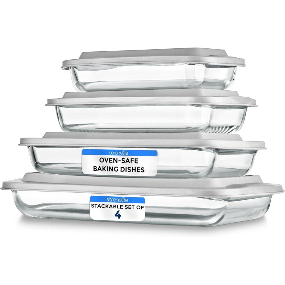 Be the first to review “SereneLife 8-Piece Glass Baking Dish with Lids Set – ( 4 Heavy Duty Rectangular Glass Baking Pan with 4 BPA-Free Lids ), Oven-Safe Bakeware for Lasagna, Meats, Desserts – Dishwasher Safe, Red(White)”