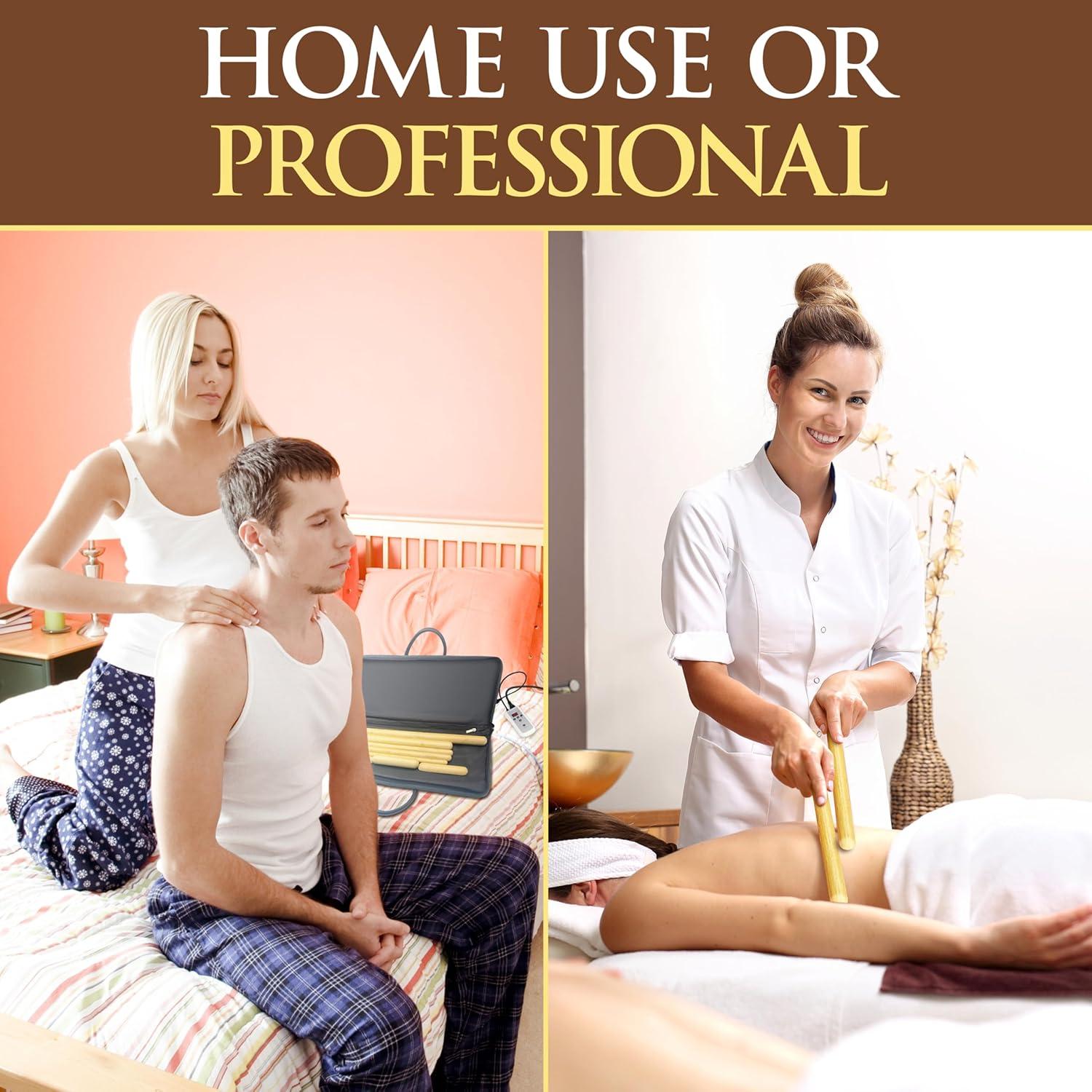 SOLID BAMBOO STICKS: The set includes 8 bamboo massage sticks that retain heat for up to 30 minutes. The longer sticks are ideal for massaging larger areas, while the shorter sticks work well for more targeted areas.