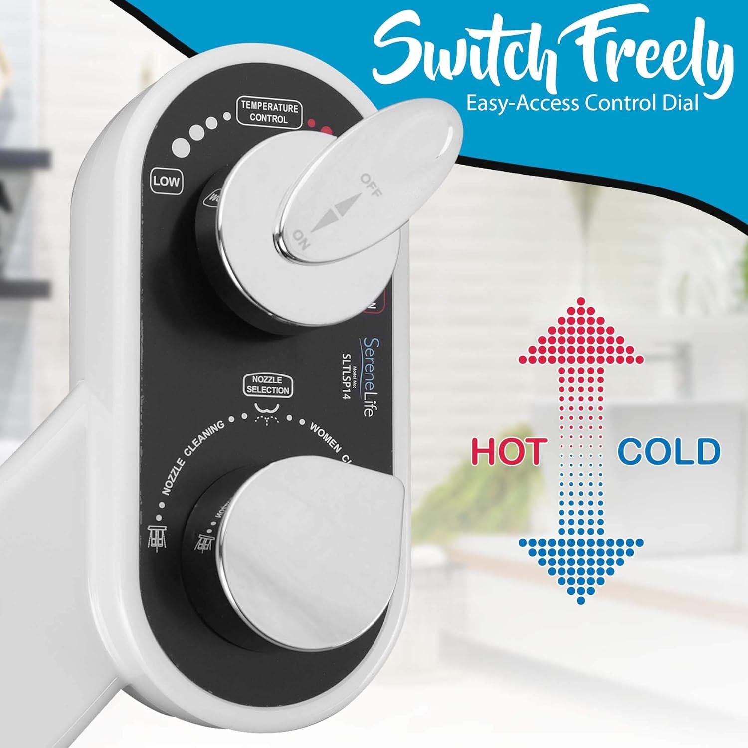 Serenelife Bathroom Bidet Seat Attachment – Fresh & Hot Water Adjustable Function with Plastic Sprayer for Full Bottom Cleaning – Standard Non-Electric Mechanical Self Clean Personal Hygiene SLTLSP14(10 Ounce)