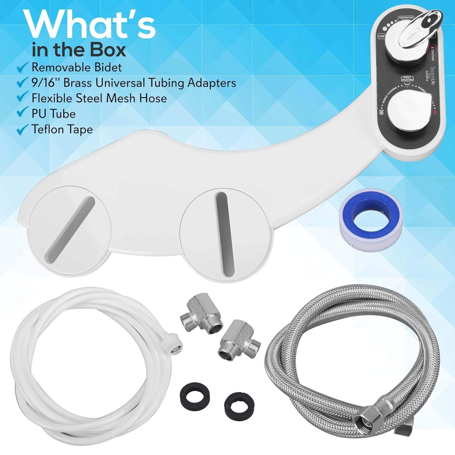 The SereneLife Bathroom Bidet Attachment – Hot/Cold Water Toilet Seat Bidet Sprayer – Non-Electric Hot/Cold Water Bidet – D.I.Y. Installation: Easy-to-Use & Easy-to-Setup – Universal Toilet Bowl Seat Compatibility – Fits Virtually All Toilet Bowl Makes & Models – Designed for a Gentle & Efficient Hygiene Clean.
