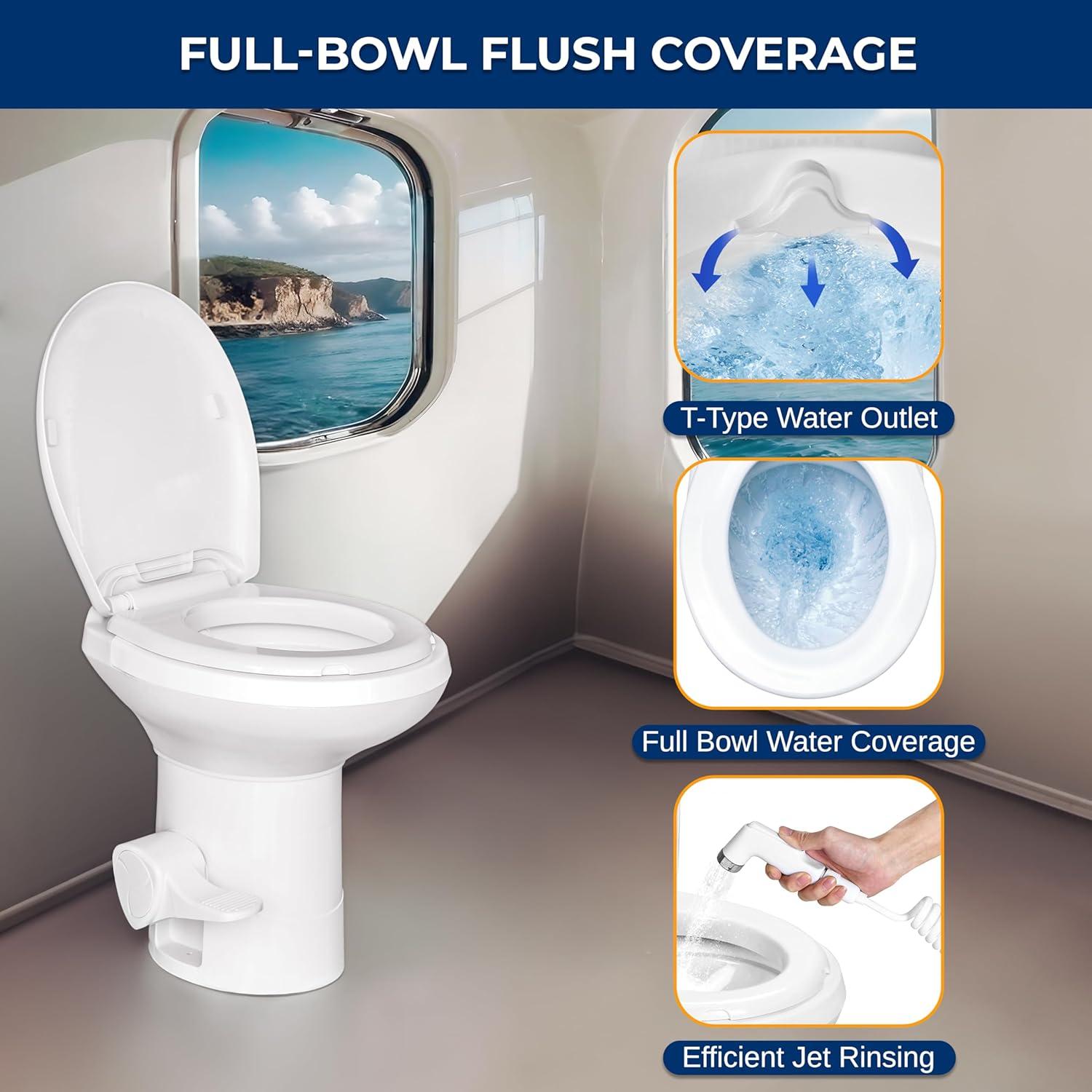 LOOKS GOOD IN YOUR RV OR BOAT – With its modern white design and easy-to-clean surface, this toilet adds a fresh, stylish look while staying simple to keep shiny and new.