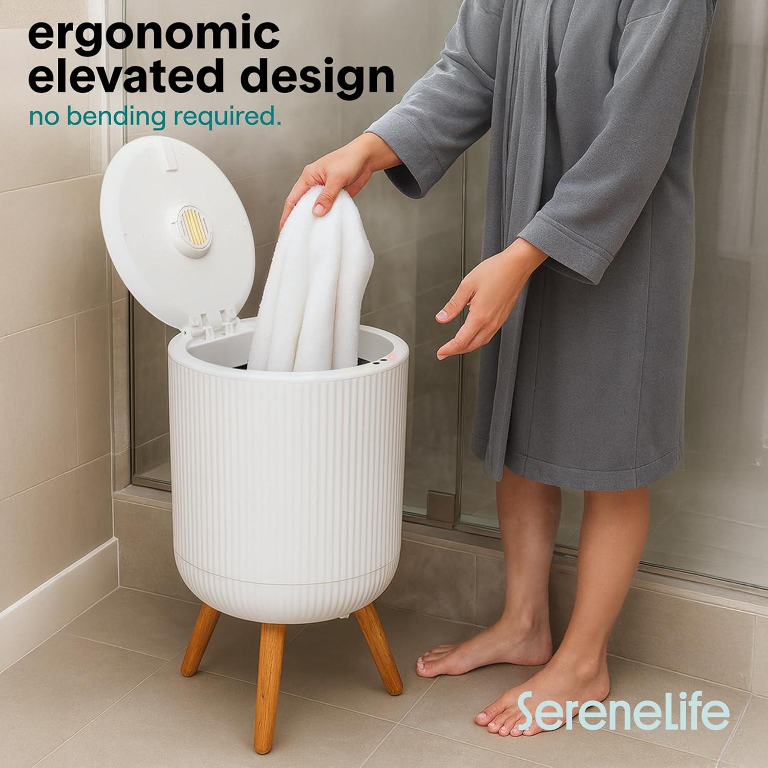 Turn your home into a personal spa with the SereneLife Bucket Towel Warmer, a compact yet powerful solution for year-round comfort. This 12L towel warmer holds one large towel, bathrobe, or pair of PJs, providing consistent, even heat in minutes. Whether you’re starting the day or winding down, this hot towel warmer creates the ultimate soothing experience. Select from four timer settings—20, 40, 60, or 90 minutes—then let the unit auto shut off when done. LED indicators and easy-touch controls simplify operation, while a built-in scent disk holder adds a fresh, calming fragrance to your towels. Its sleek design fits seamlessly in any space, and the built-in power cord storage ensures a tidy look. This versatile blanket warmer is perfect for bathrooms, salons, gyms, or bedrooms, helping maintain fabric hygiene while delivering warmth and luxury. If you're seeking stylish and functional towel warmers for bathroom use, this SereneLife unit is your go-to comfort upgrade.