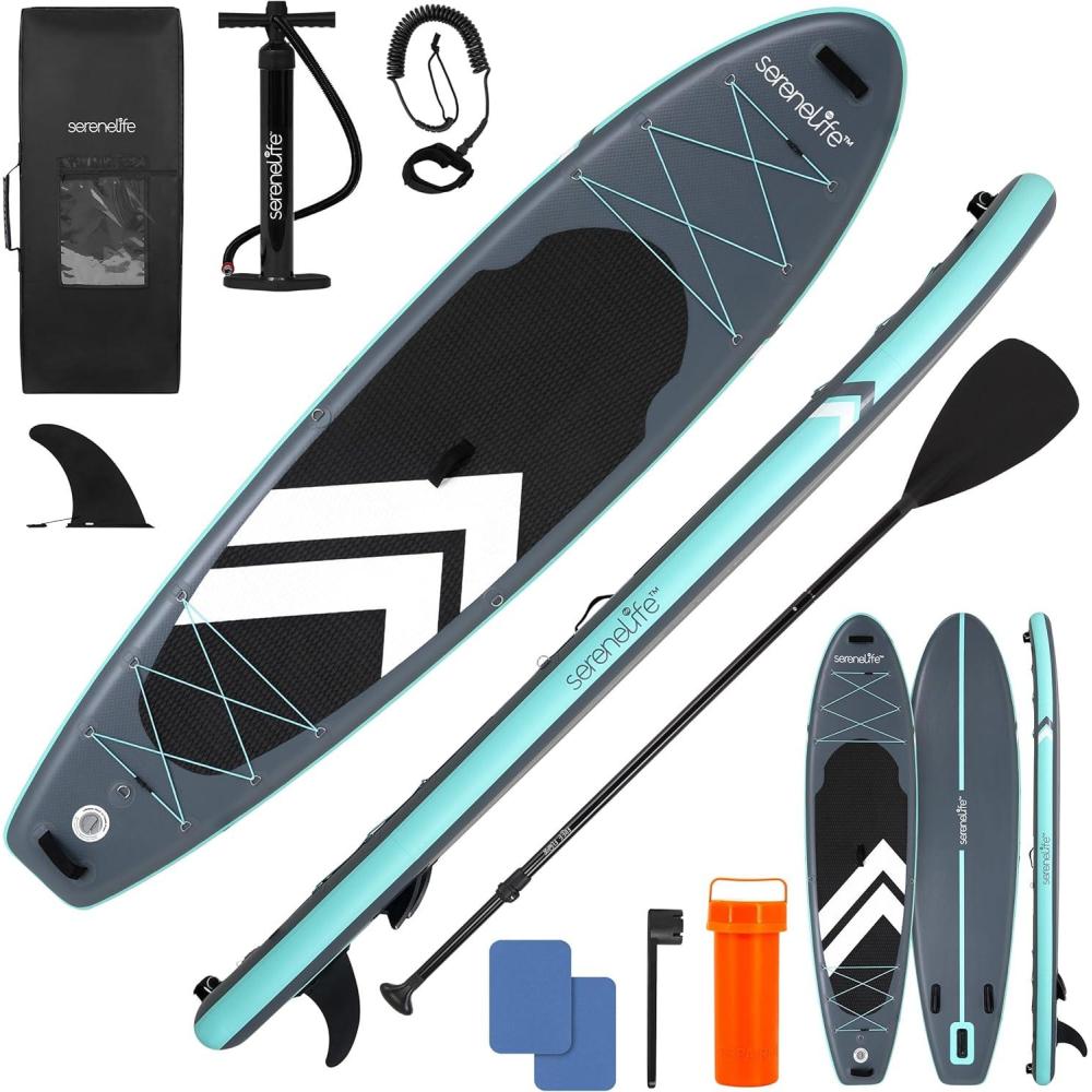 VERSATILE SUP BOARD: Great for lakes, rivers, or ocean adventures. Perfect for paddling, yoga, fishing, and more. The lightweight, portable design easily deflates to fit in the included backpack – ideal for family trips and off-season storage.
