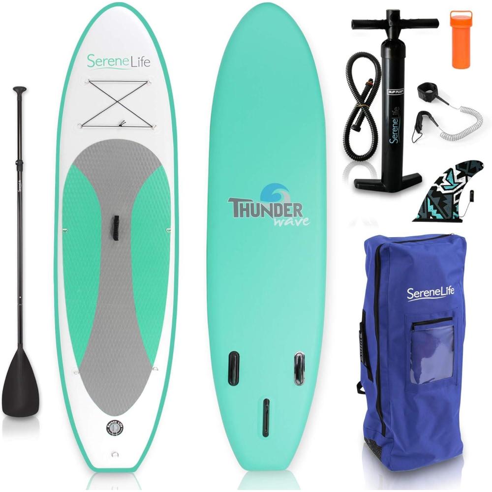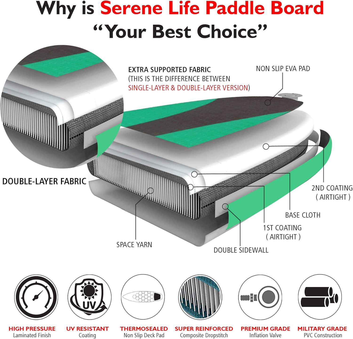 SereneLife Inflatable Stand Up Paddle Board with Premium SUP Accessories – Wide Stable Design with Non-Slip EVA Deck Pad for Adults and Youth of All Skill Levels, 350 lbs Capacity(Green/White)