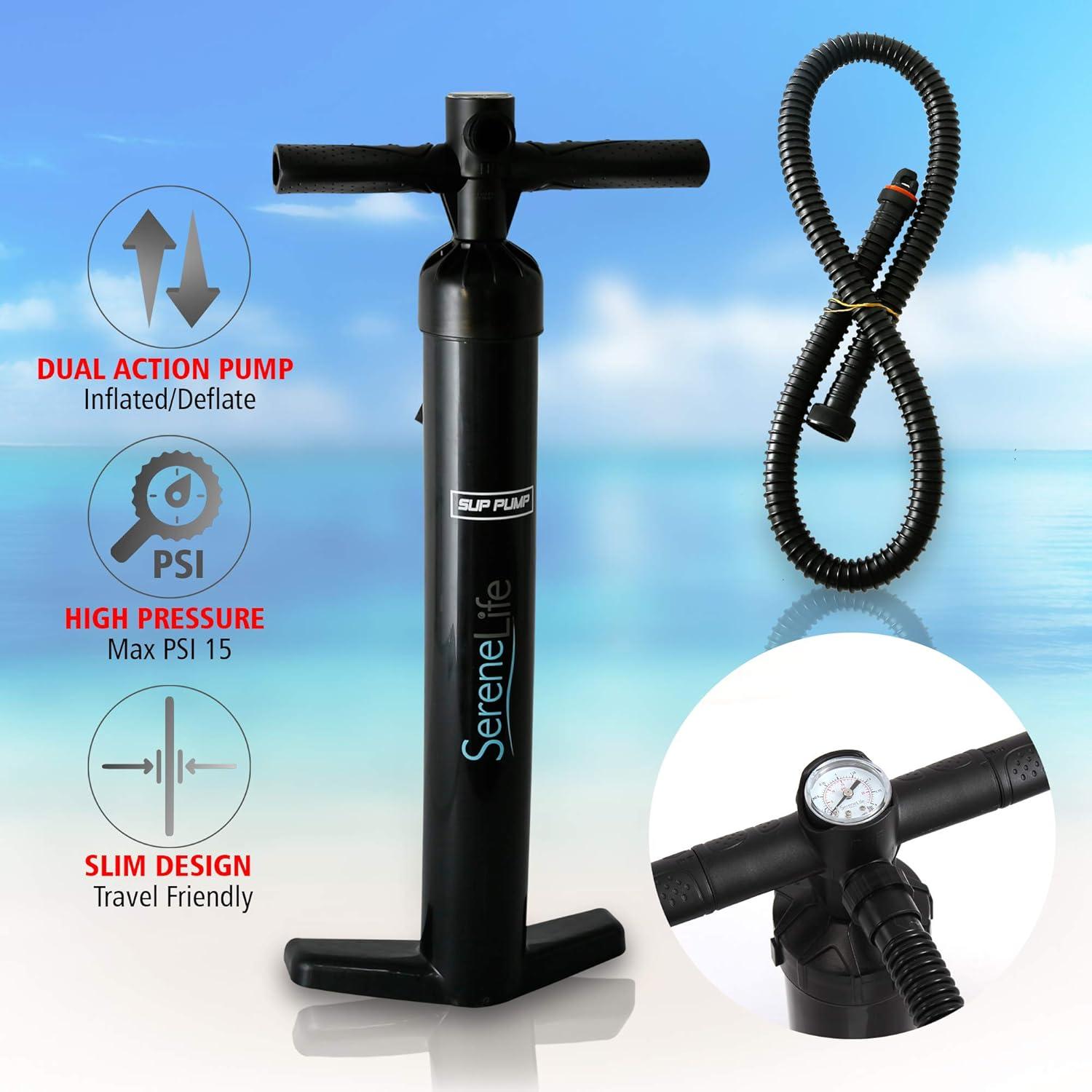 imageSereneLife Inflatable Stand Up Paddle Board with Premium SUP Accessories  Wide Stable Design with NonSlip EVA Deck Pad for Adults and Youth of All Skill Levels 350 lbs CapacityBlueWhite