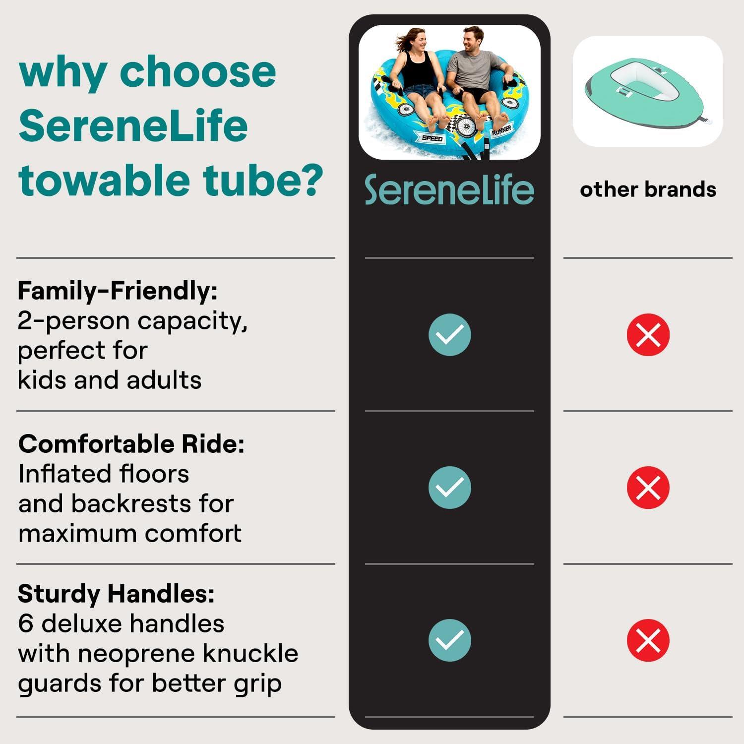 Serenelife Inflatable Towable Tube for Boating – 2-4 Person, 4500 lbs Pulling Capacity, Deck Seats & Backrest, Premium Nylon Cover, Grab Handles, Front/Back Tow Points, Speed Safety Valve(2 Person)
