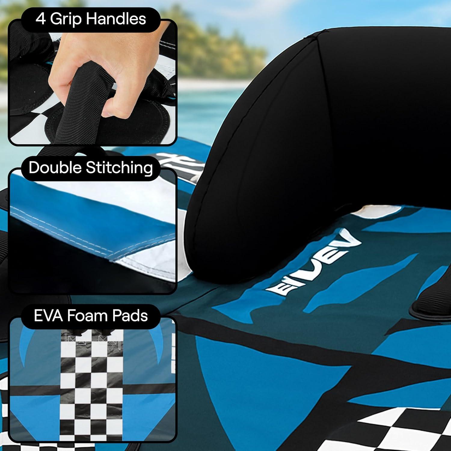 FUN FOR ALL AGES: This water sports booster tow tube features a wide stable universal seating design which provides stability and balance for kids, teens, and adults. Can be safely used on lake, ocean, pool, pond, river, bayou or beach