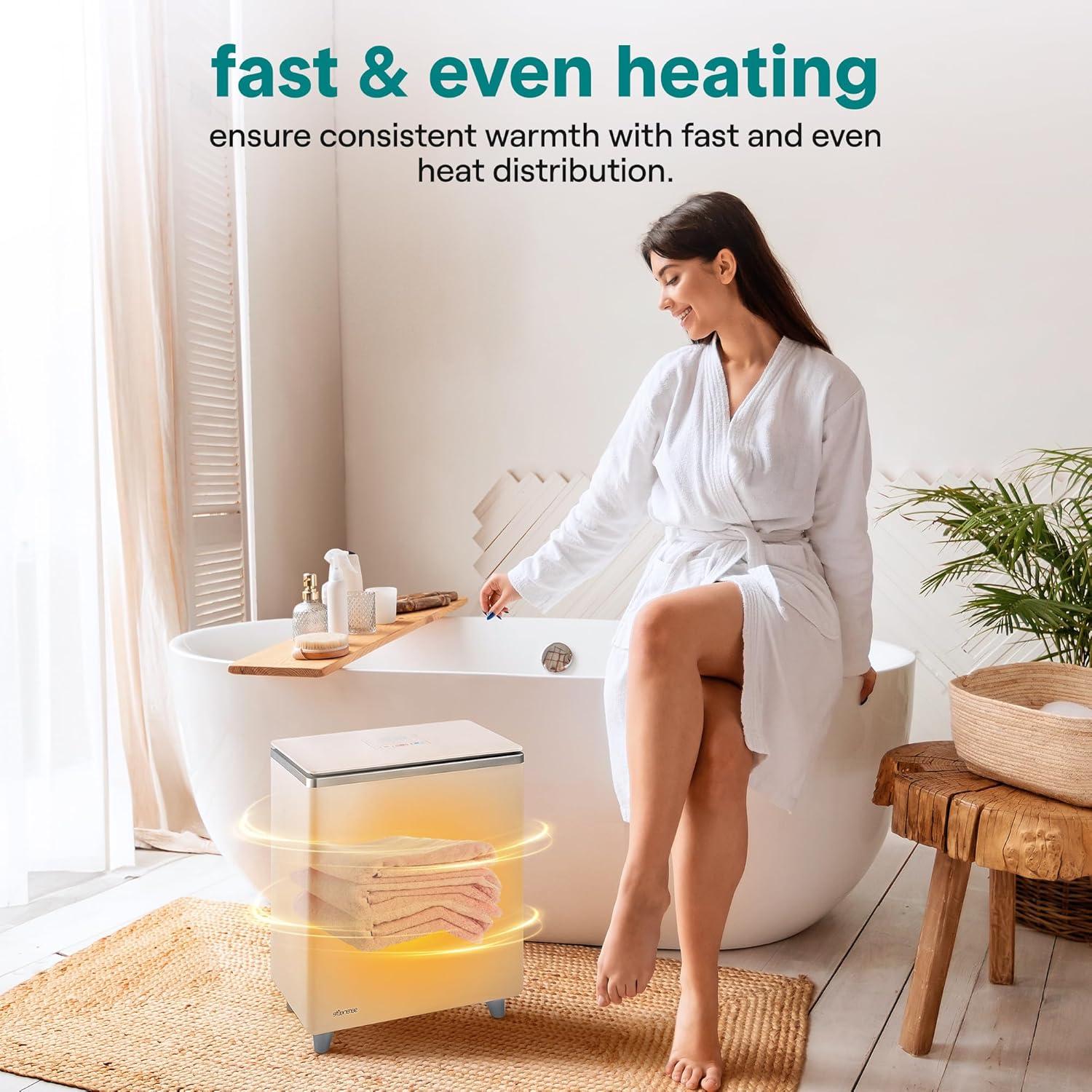 PORTABLE AND ENERGY-EFFICIENT – Designed for easy transport, this hot towel warmer bucket is power-conscious, ensuring energy-saving performance. Enjoy warm towels, robes, and blankets without worrying about high energy use or safety
