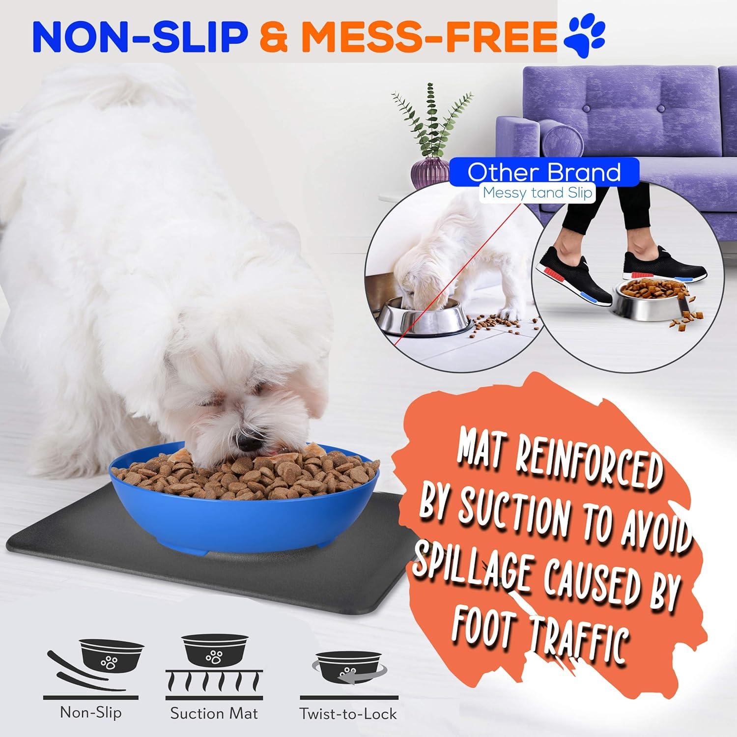 SereneLife Non Skid Pet Bowl Set – No Flip Dog Bowl Dog Spill Proof Mat Set – Interlocking Non Skid Pet Puppy Cat Dog Bowl with Mat – Twisty Dish Food/Water Bowl for Mess Free Feeding SLTDG66 (Blue)(Default Title)