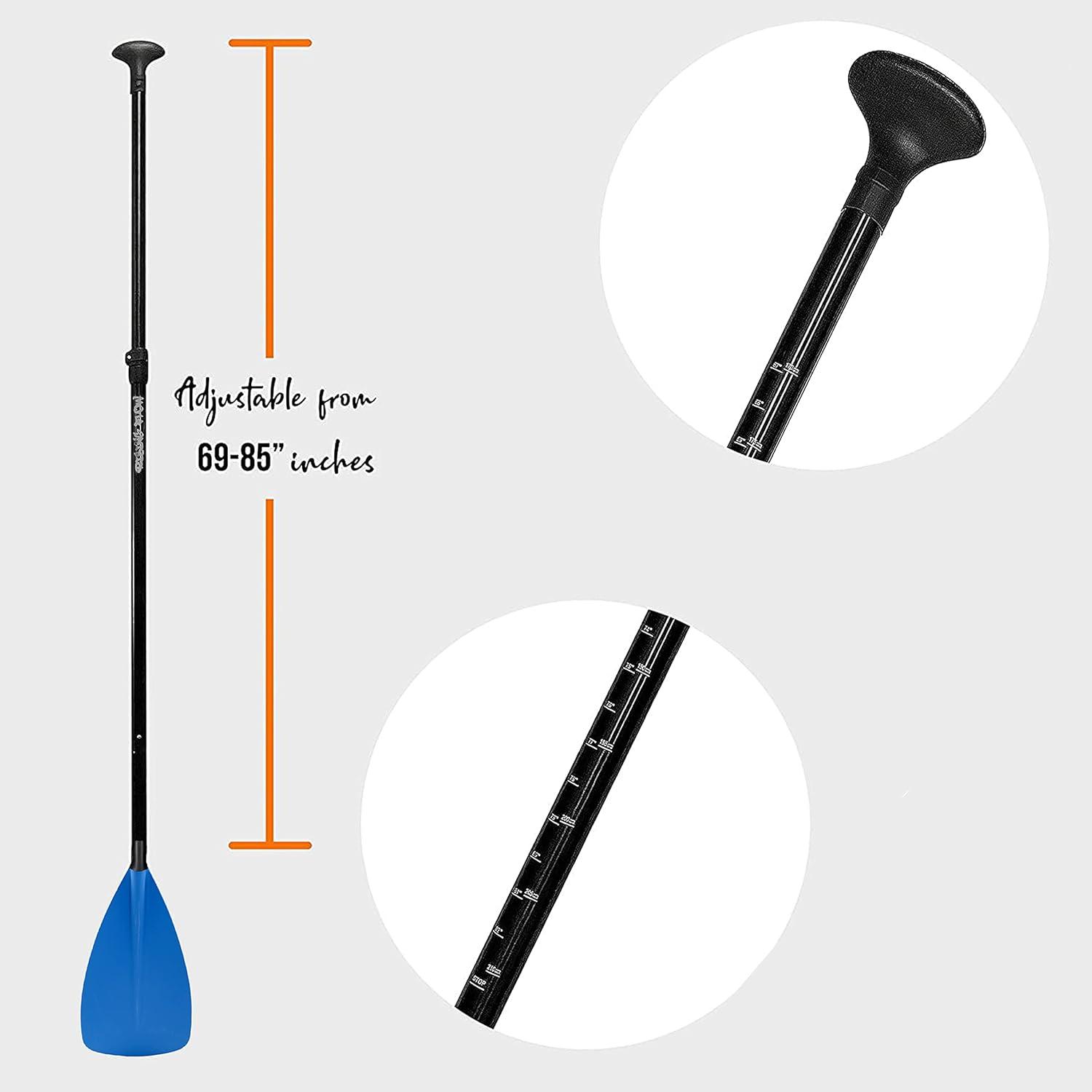 ADJUSTABLE HANDLE AND HEIGHT: The paddle's handle shaft can be adjusted from the top section up/down until the length is comfortable for you. A longer paddle is for a smooth, easier paddling motion, the shorter paddle is good for competition riding