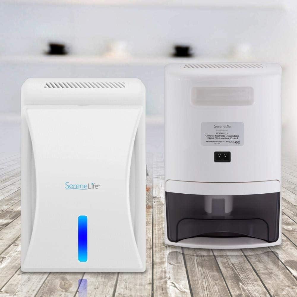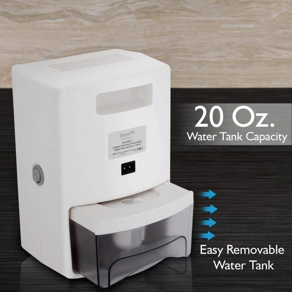 SereneLife Upgraded Electronic Air Dehumidifier – Breathe Easier Odor Eliminator Moisture Control Ventilation Fan Reusable Air Filter Removable Water Tank Rooms up to 1600 Cu Ft, 20 Oz. – PDUMID35(1 600 Cubic Feet)