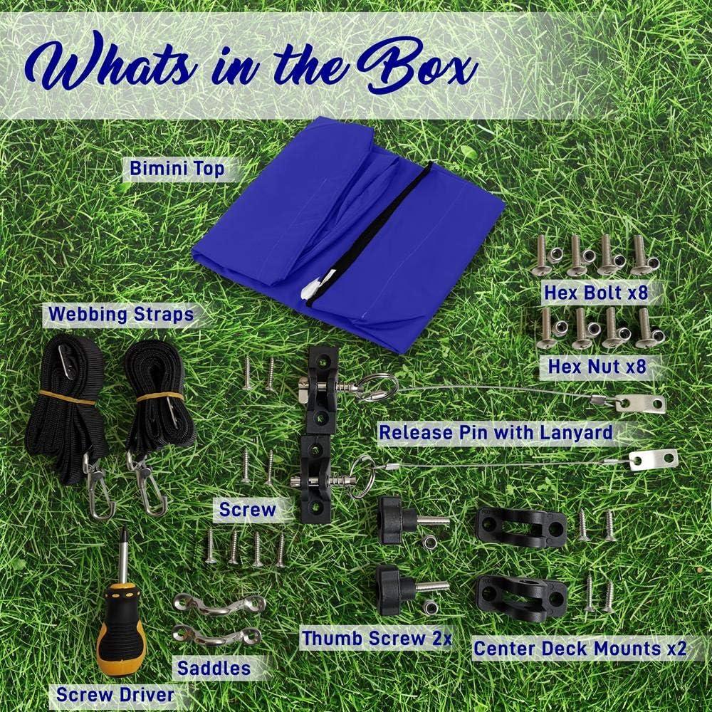 Features: – Marine-grade 600D Polyester Canvas – Double Overlapped Stitching – All Stainless Steel Mounting Hardware – Color Coordinated Zippered Storage Boot – 1 Diameter Aluminum Frame – Double-walled Main Bow Legs for Maximum Strength – 2 Straps and 2 Rear Support Poles – Very Easy to Install – Waterproof and UV Resistant in Marine Environment – Suitable for Any Weather – *Assemble Instruction Included What's in the Box: – (2) Tubes – (3) Crossbars – (1) Canopy with storage boot – (2) Rear Support Poles – (1) Hardware Box Technical Specs: – Canvas Material: Marine-Grade 600 Denier Polyester – Frame Material: 1″ Double-Walled Aluminum Tubes – UV Protection Reaches Level 4( Highest Level 5) – Color fastness-light>=4.5 AATCC_16.3 (Highest 5) – Product