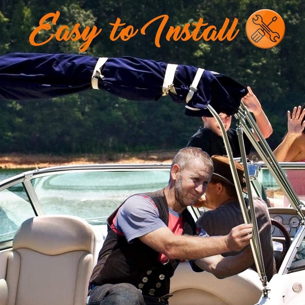 ZIPPERED STORAGE BOOT: This boat bow shade bimini roof comes w/ a color-coordinated zippered bimini top boot cover so you can roll up the canvas into the boot for easy storage and prevent it from blowing off
